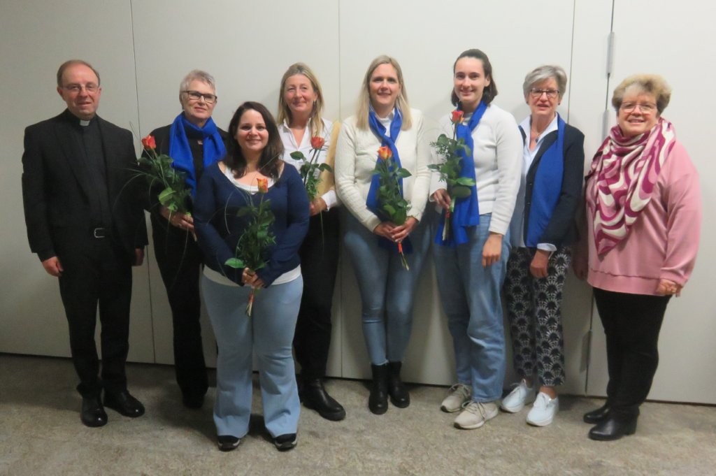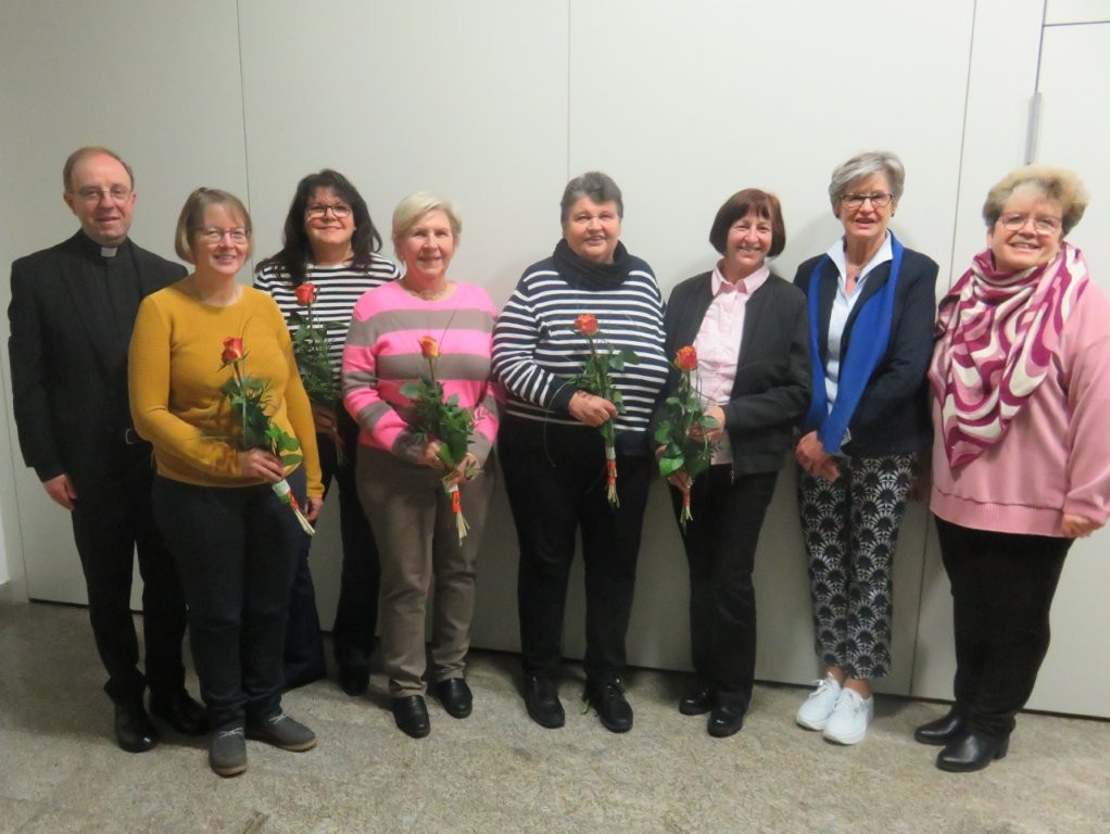 Zum Abschluss stellten sich die Neumitglieder und die anwesenden, geehrten, langjährigen Mitglieder mit Herrn Pfarrer Renner, Fr. Pfaller und Vorstandssprecherin Fr. Weinbeck, zu einem gemeinsamen Foto auf.
